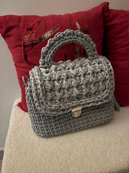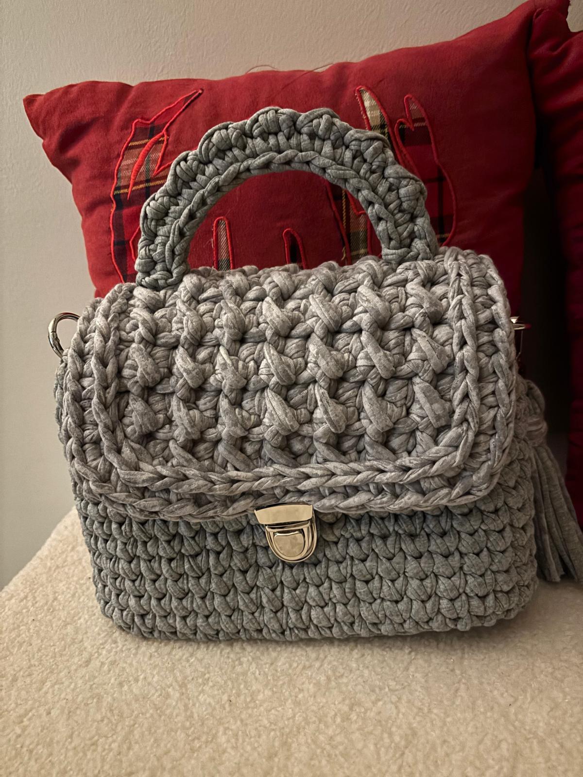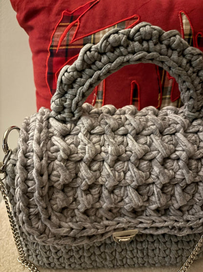 Sac en crochet artisanal - Élégance et charme intemporel Ce sac unique en crochet est l’accessoire parfait pour allier style et écoresponsabilité. Conçu à partir de fil de maille recyclé, il se distingue par son look délicat et ses finitions sophistiquées.