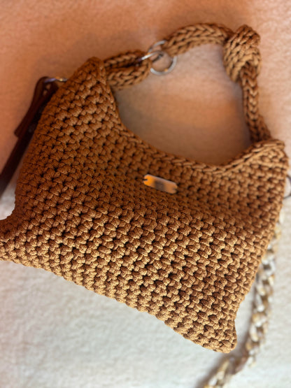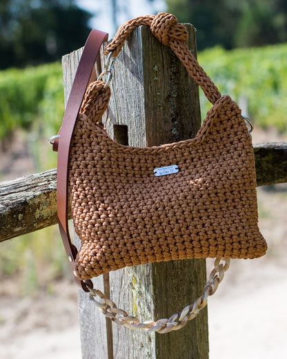 Sa forme souple et sa double anse (crochet et cuir/chaîne) en font un modèle chic et pratique, idéal pour toutes les occasions.
