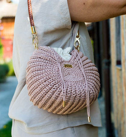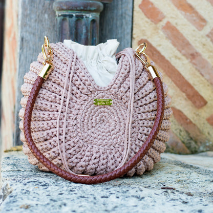 Un sac crocheté à la main, inspiré de la délicatesse d’une perle précieuse.